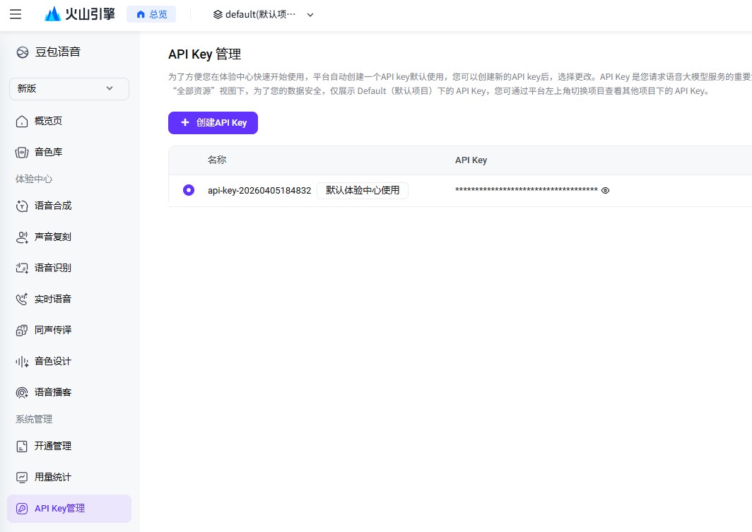 进入控制台开通「语音服务」的大模型ASR能力,拿到你的API Key记录起来。我这里存放到 C:\lindexi\Work\Speech.txt 文件里面
