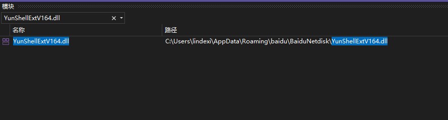 通过 C:\Users\lindexi\AppData\Roaming\baidu\BaiduNetdisk\YunShellExtV164.dll 路径可以看到这是百度云的 DLL 文件。为什么会加载它?它又卡在哪?