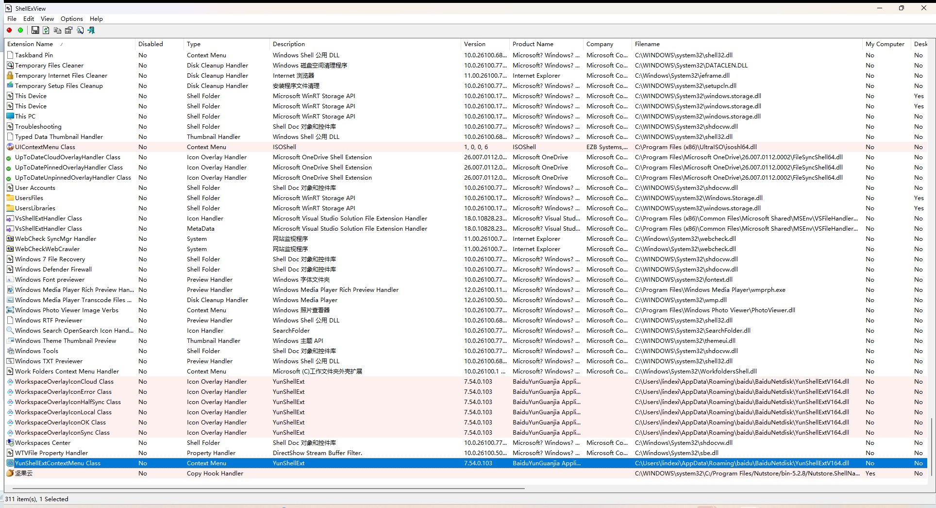 通过 https://www.nirsoft.net/utils/shexview.html 提供的 ShellView 工具干掉百度云右键菜单