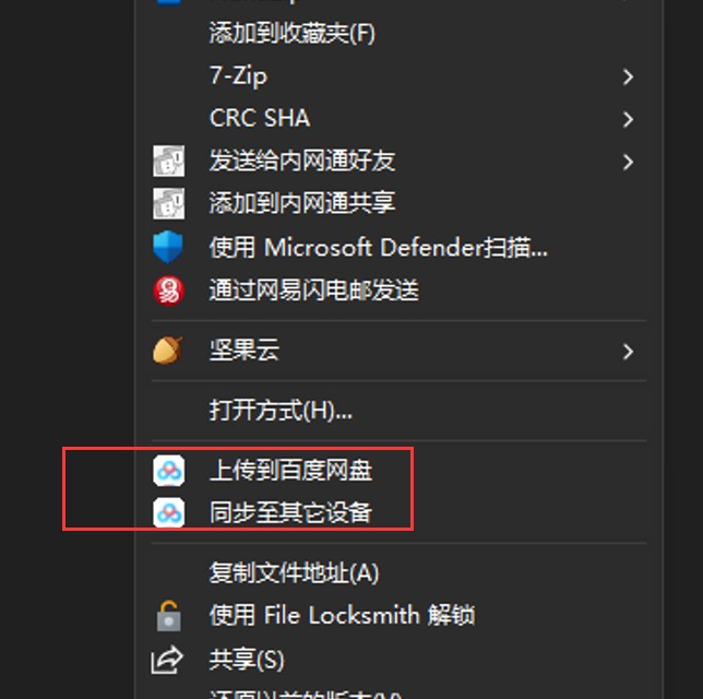 从用户侧来说,我可以禁用百度云的右键菜单,如此也可以提升我的右键菜单的性能。我完全不用右键菜单的百度云的功能,其百度云右键菜单的功能如下图所示